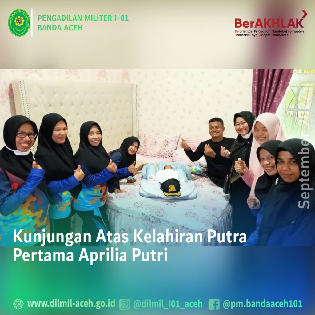 Banda Aceh – 16 September 2022. Kadilmil I-01 Banda Aceh Kolonel Chk Masykur, S.T., S.H., M.H. bersama ibu-ibu Dharmayukti Pengadilan Militer I-01 Banda Aceh melakukan kunjungan atas kelahiran putra dari PPNPN Aprila Putri.
