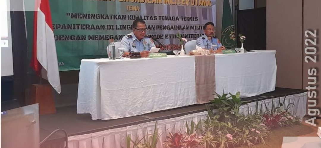 Banda Aceh – 24 Agustus 2022. Kepala Pengadilan Militer I-01 Banda Aceh, Kolonel Chk Masykur, S.T., S.H., M.H. menghadiri Pembukaan Kegiatan Bimbingan Teknis Kepaniteraan Dilmiltama TA. 2022 dengan tema “Meningkatkan Kualitas Tenaga Teknis Kepaniteraan di Lingkungan Peradilan Militer dengan Memegang Teguh Kode Etik Panitera” diikuti juga oleh Panitera Muda Pidana, Letda Chk Ageng Suyanto, S.H. dengan ASN Ardhy Imam Prajoko Secara daring dan Kapten Chk Teddy S, S.H. hadir secara tatap muka bertempat di Hotel Novotel Bandung selama 3 hari mulai tanggal 24 s.d 26 Agustus 2022.