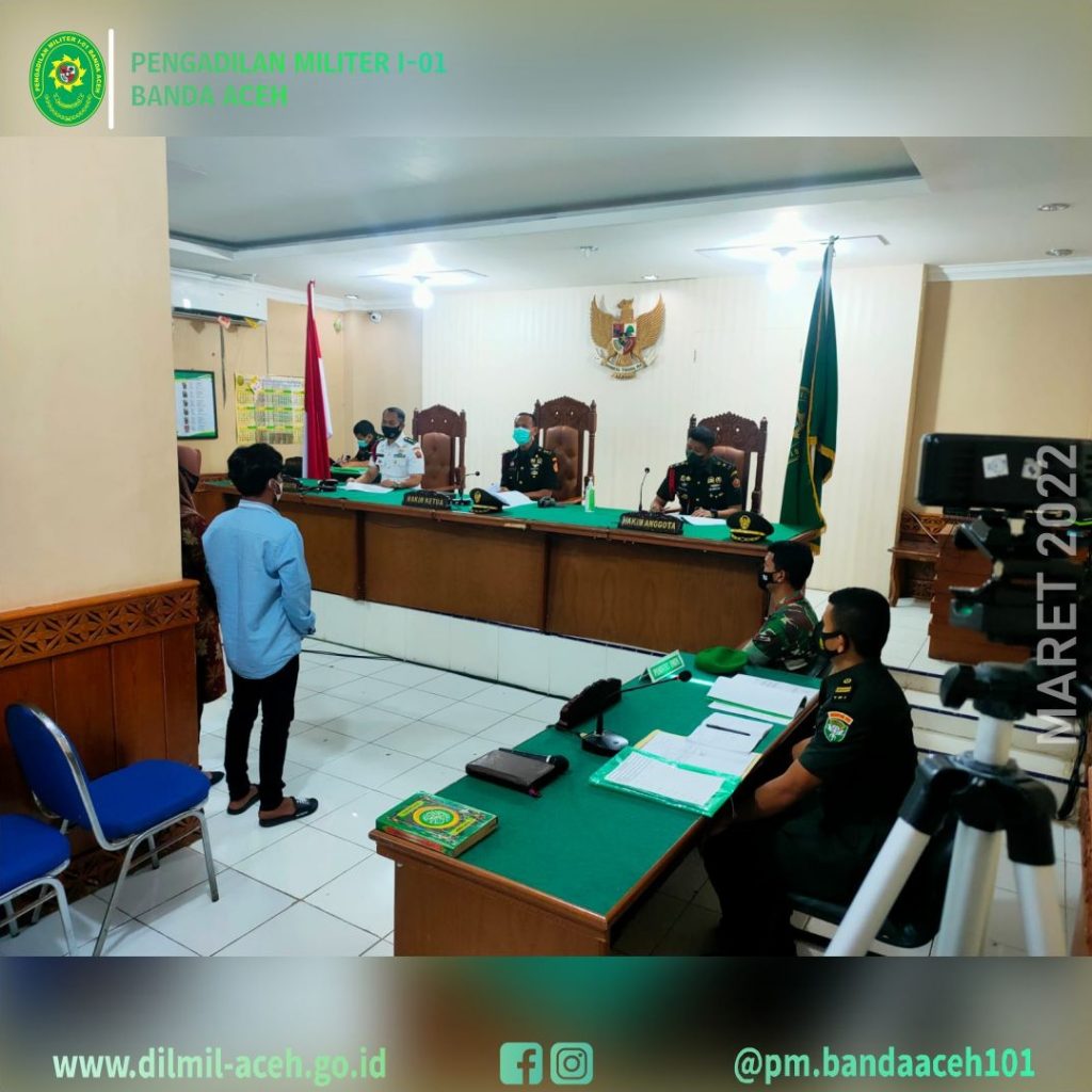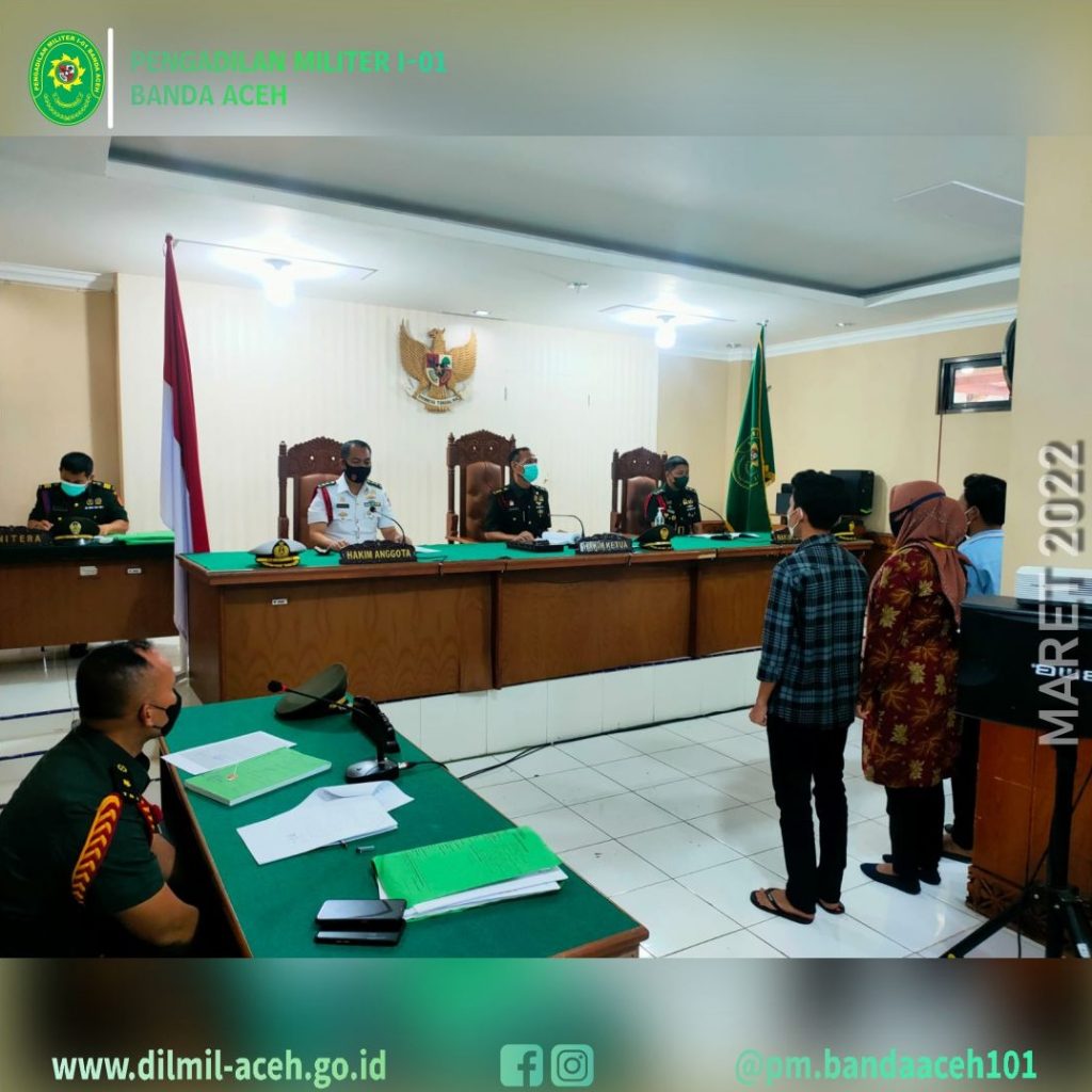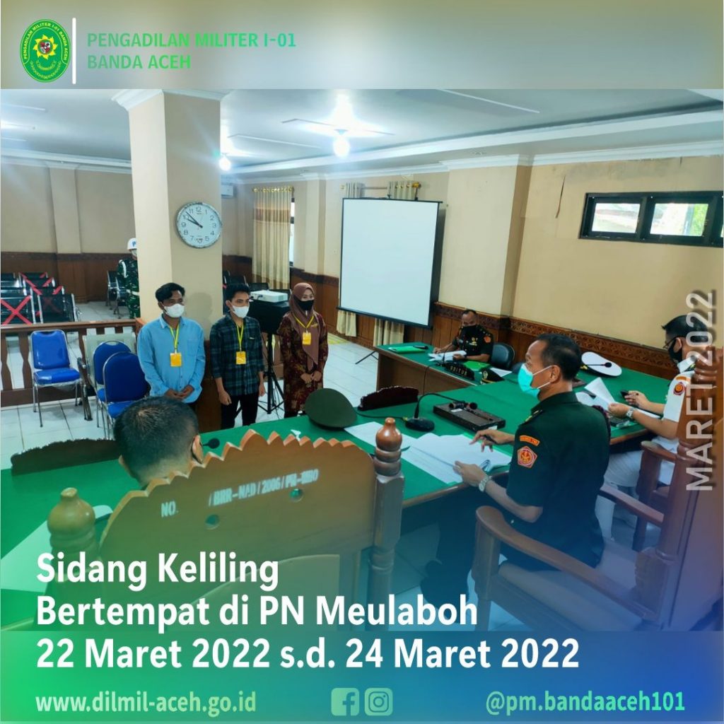 Meulaboh – 22 Maret 2022, Pengadilan Militer I-01 Banda Aceh melaksanakan sidang keliling perkara tingkat pertama di wilayah jajaran Korem 012/TU bertempat di ruang sidang Pengadilan Negeri Meulaboh sebagai bentuk pelayanan kepada para Pencari Keadilan.