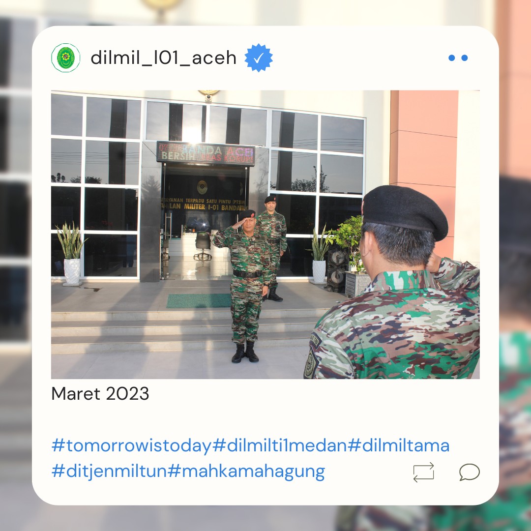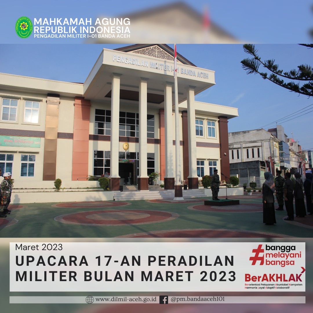 Banda Aceh – 29 Maret 2023. Kadilmil I-01 Banda Aceh Kolonel Chk Masykur, S.T., S.H., M.H. didampingi oleh Hakim Militer Letkol Setijatno, S.H. dan Panitera Kapten Chk Teddy Septiana, S.H., memberikan pembekalan kepada mahasiswa Prodi Ilmu Hukum Unsyiah yang melaksanakan program kuliah lapangan mata kuliah Etika Profesi (magang) di Pengadilan Militer I-01 Banda Aceh. Mata kuliah etika profesi adalah mata kuliah yang wajib diambil oleh setiap mahasiswa program studi ilmu hukum. Mata kuliah ini mempelajari tentang profesi-profesi hukum yang ada di Indonesia terkait dengan kode etik profesi, tugas dan fungsi dari masing-masing profesi.