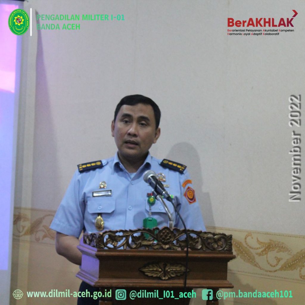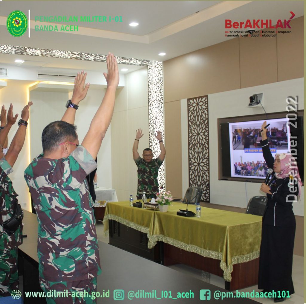 Banda Aceh – 5 Desember 2022. Yayasan Sosialisasi Kanker Indonesia melakukan kegiatan sosialisasi mengenai kanker dan tumor di Ruang Audotorium Pengadilan Militer I-01 Banda Aceh, kegiatan sosialisasi dihadiri oleh Seluruh Personel Pengadilan Militer I-01 Banda Aceh.